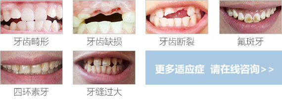 1、牙齿外伤及其它原因引起的牙体缺损后恢复原有形态。