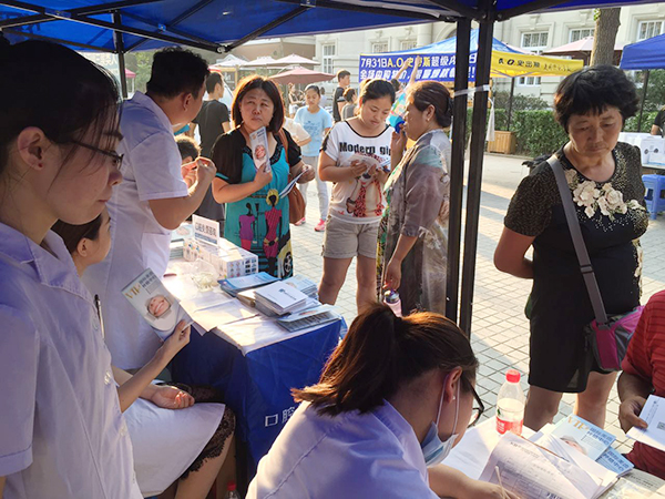 康贝佳口腔(大连)在现场设立了2个口腔义诊大棚,一共去了14名牙齿种植、牙齿矫正、牙齿美容等口腔专家,为附近的社区居民进行口腔解答。