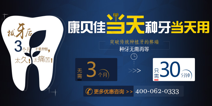 “康贝佳口腔的即刻种植牙技术,无需等待,可以当天拔牙当天戴牙呀!”